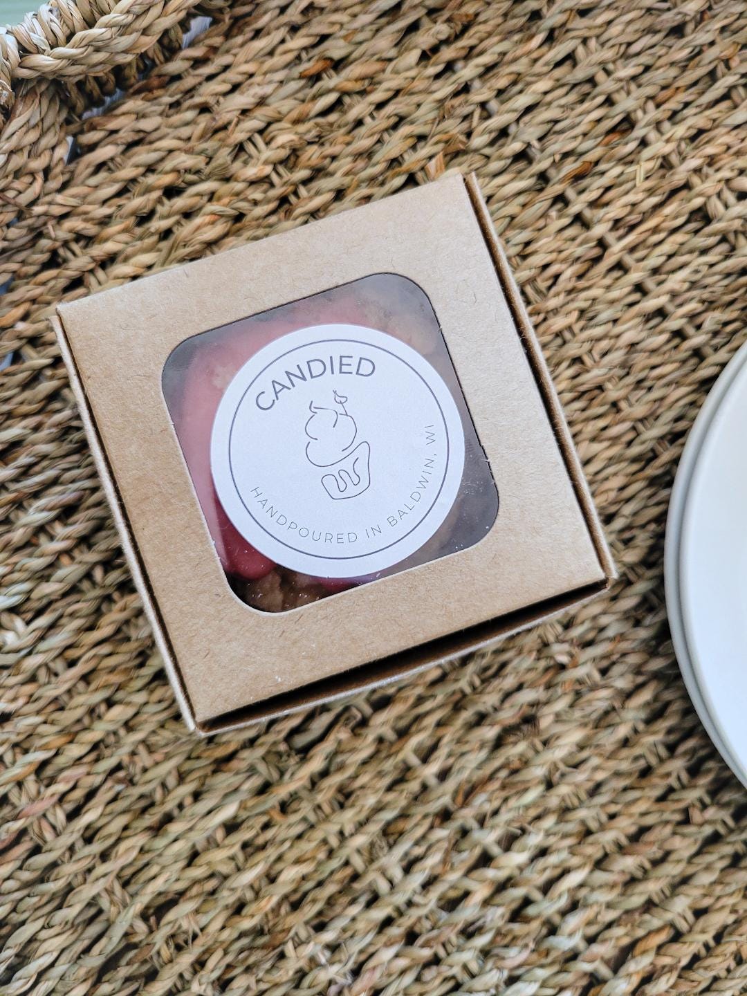 Please Note: Each Wax Melt is hand poured which may result in a slight variance of coloring from the pictures shown. Frosting is a natural occurrence with soy wax and does not affect product use.