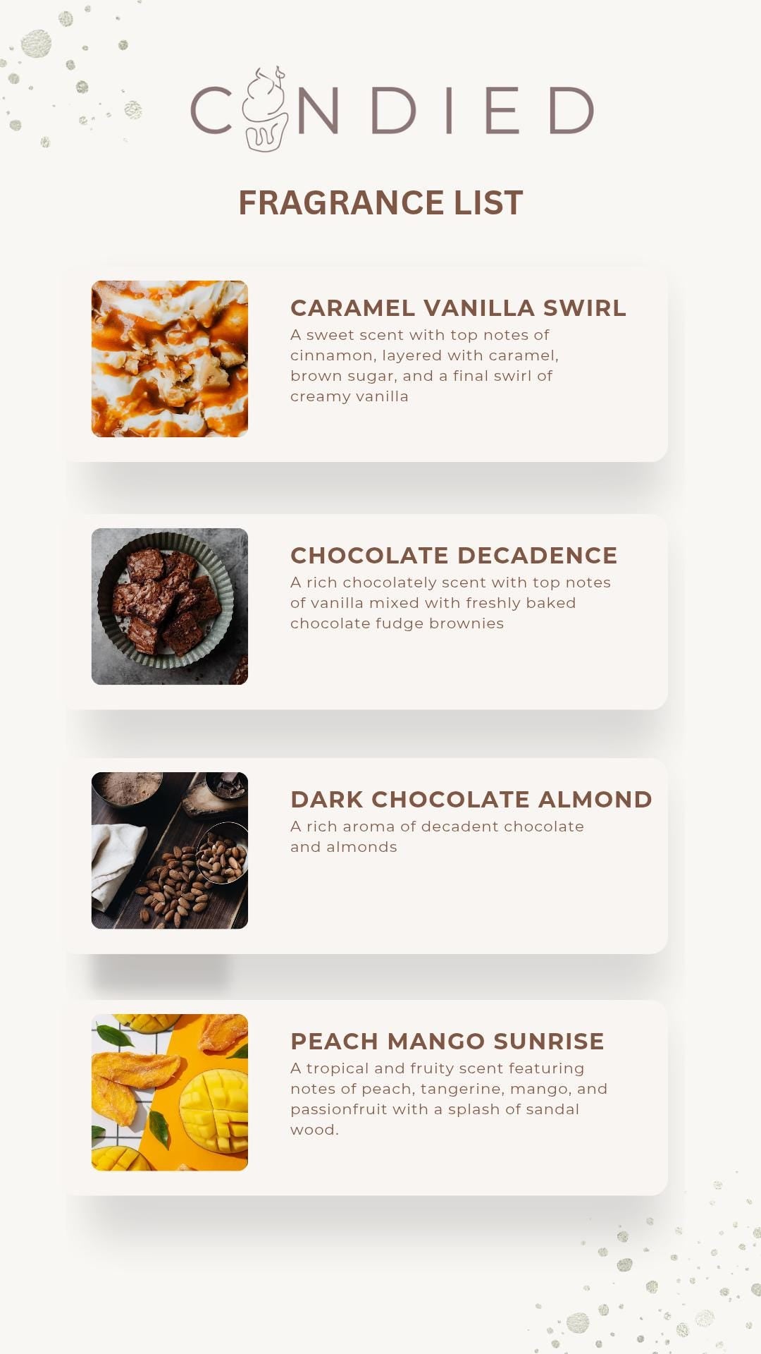 Please Note: Each Wax Melt is hand poured and some fragrance oils have a tint which may result in a slight variance of coloring from the pictures shown. Frosting may occur after some time. This is a natural occurrence with soy wax and does not affect product use.