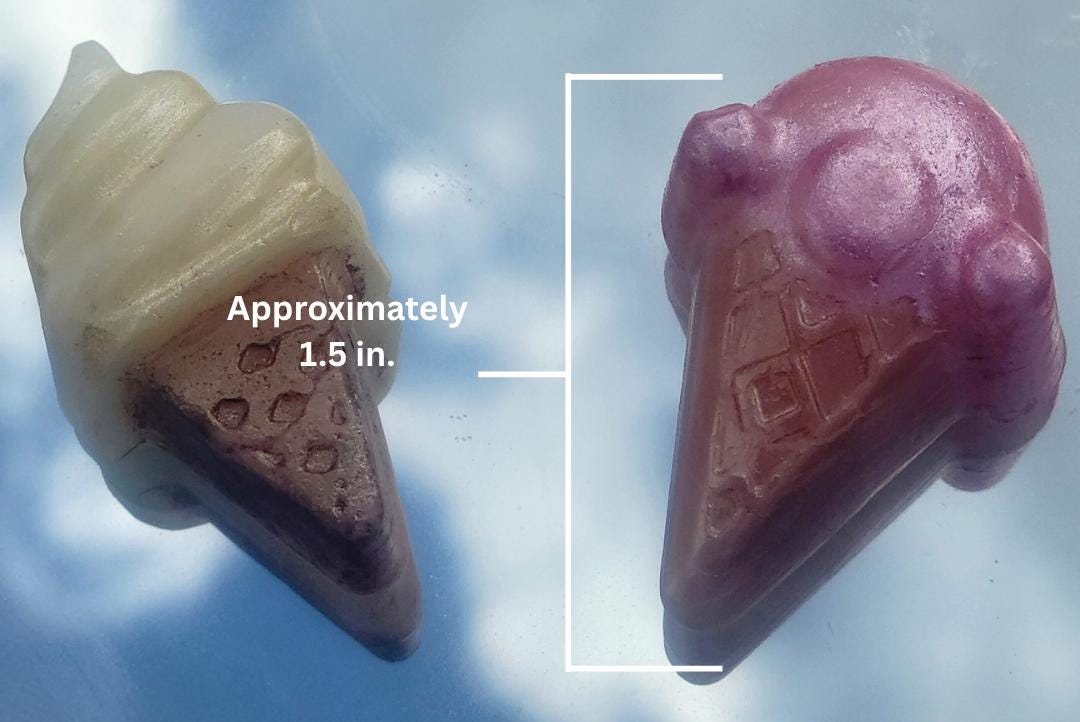 4 oz bag of shimmery pastel colored ice cream and popsicle shaped wax melts. These hand poured wax melts feature a hand-painted mix of yellows, whites, pinks, teal, and purples for the perfect summer vibe.