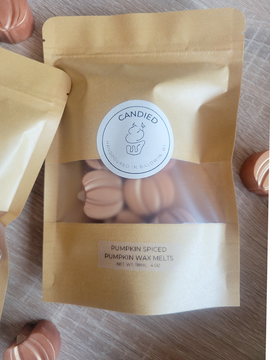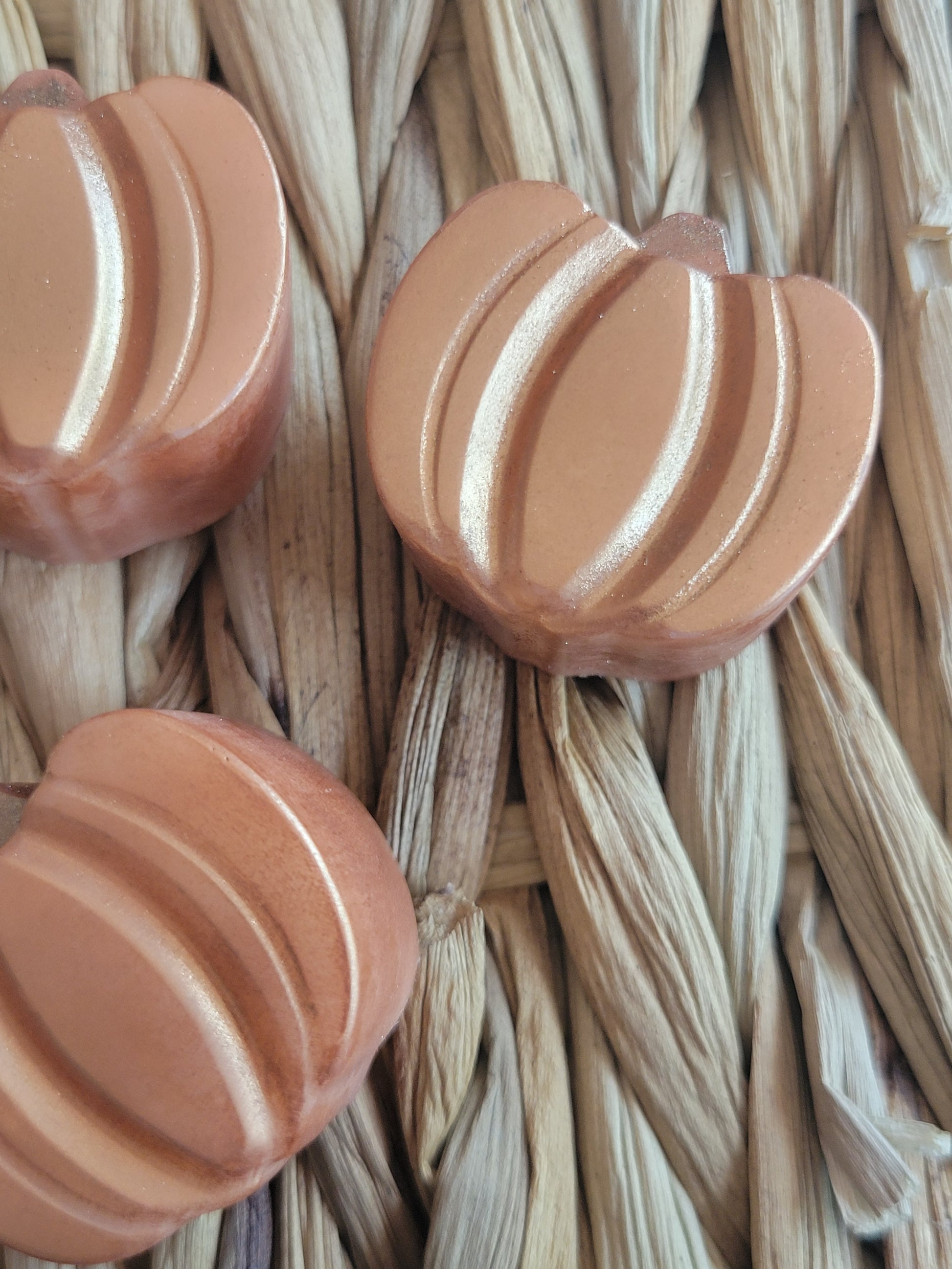 Punpkin Shaped wax melts! Each pumpkin wax melt is hand-painted with natural bronze and orage mica powders to make them shine and soarkle.